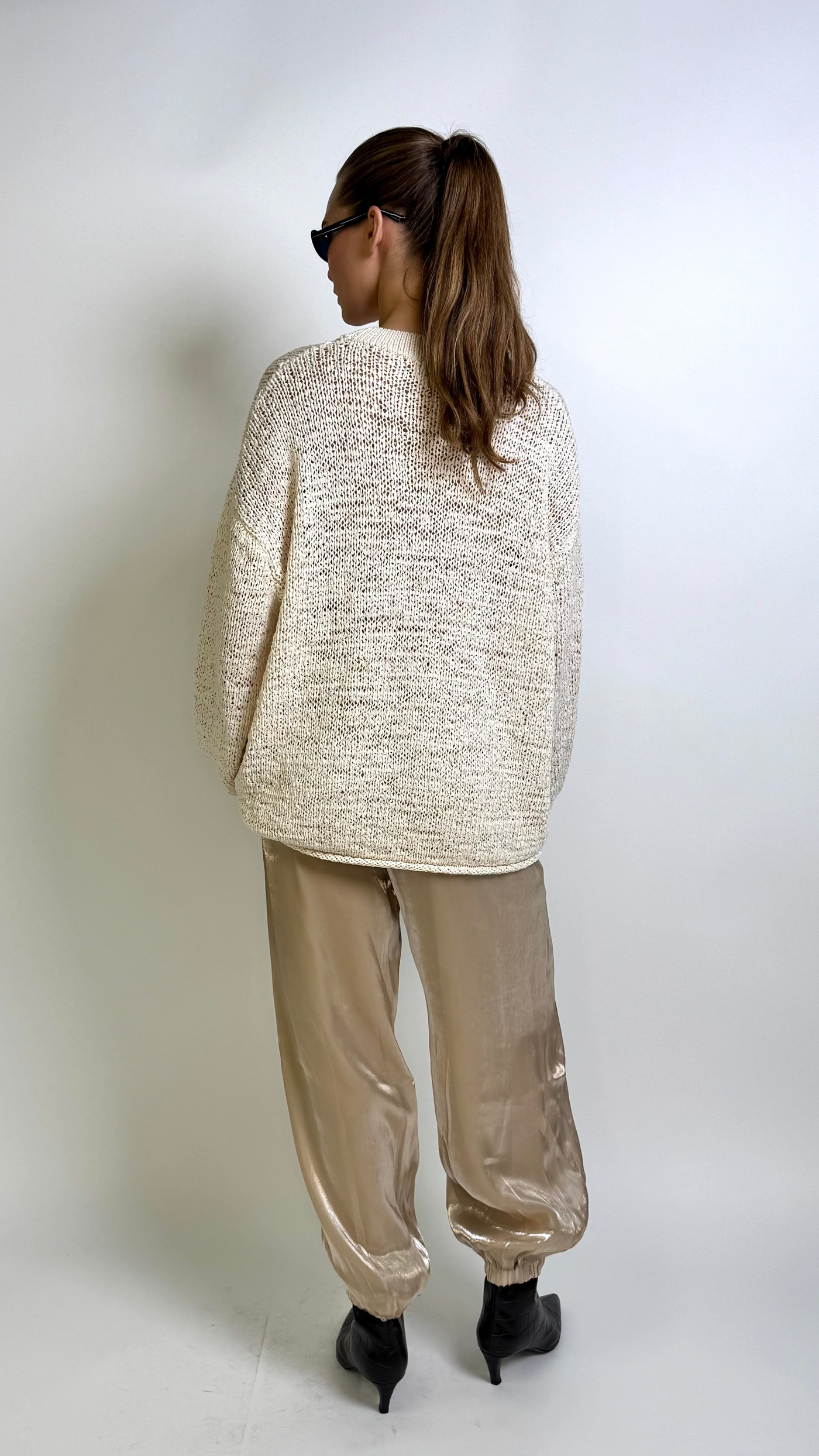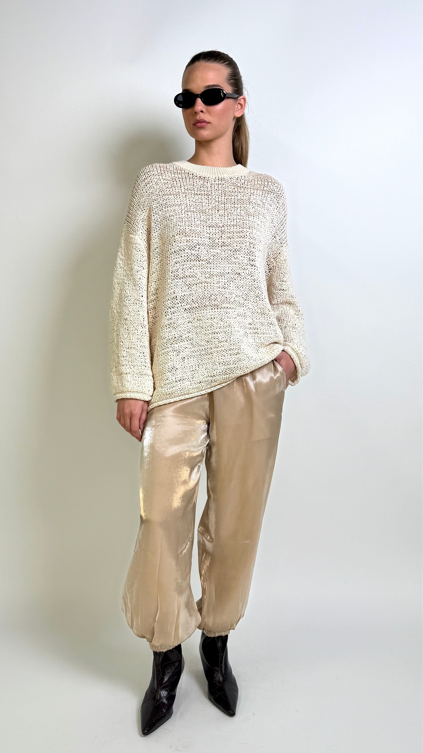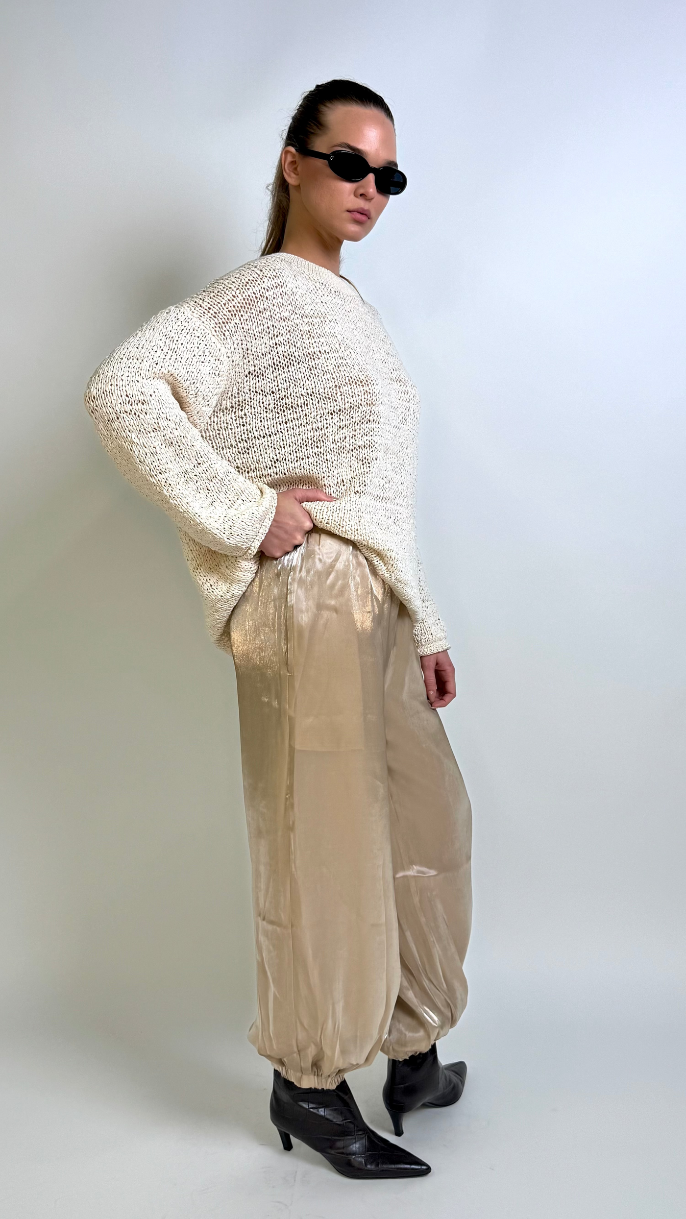The Metallic Balloon Pant combines contemporary style with a touch of glamour. Featuring a voluminous balloon silhouette in a lustrous metallic finish, these pants create a bold yet refined statement. Perfect for elevating any look, they offer both comfort and sophistication for standout occasions.