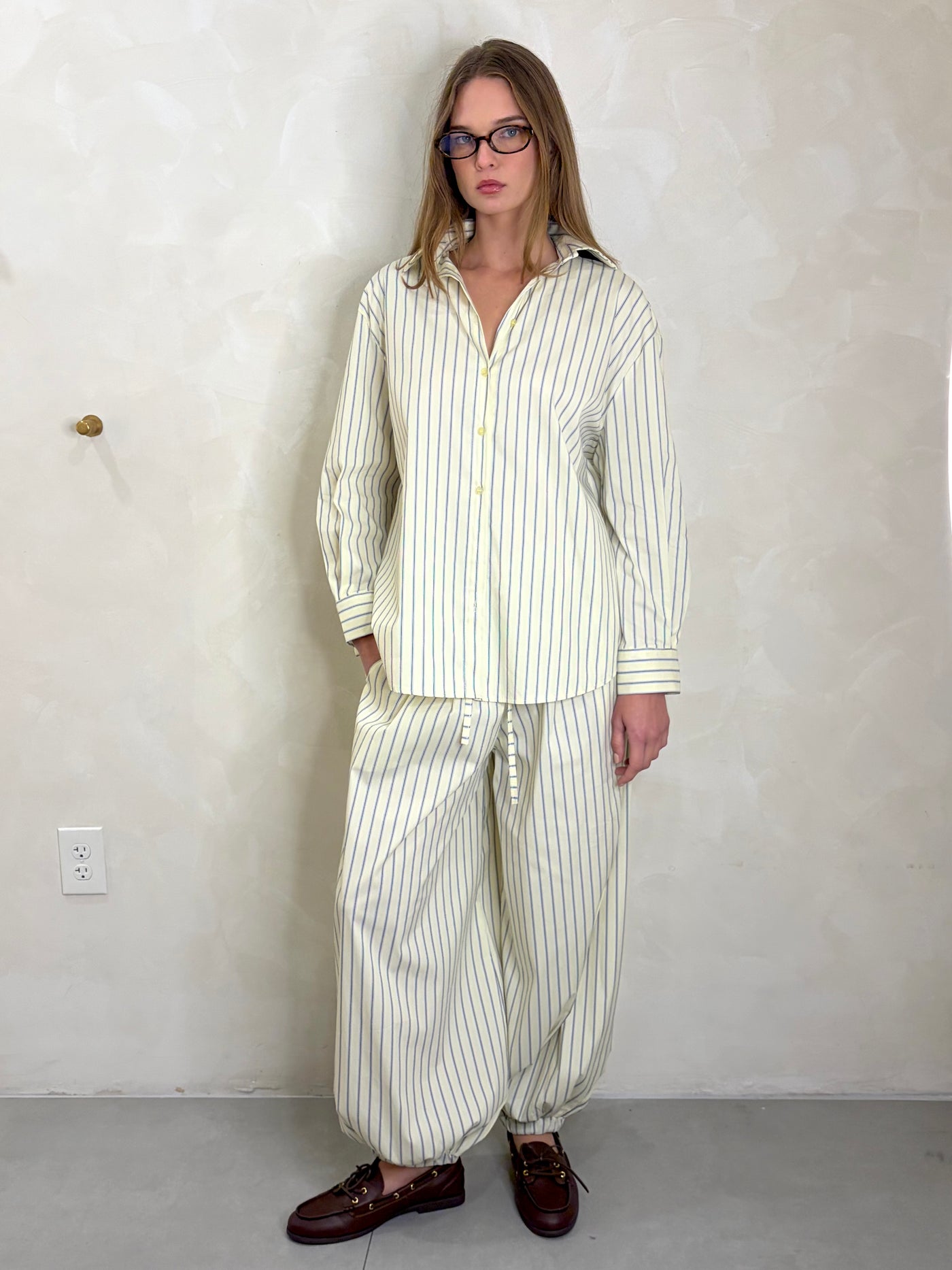 Cinch Back Stripe Shirt - O/S / Light Yellow