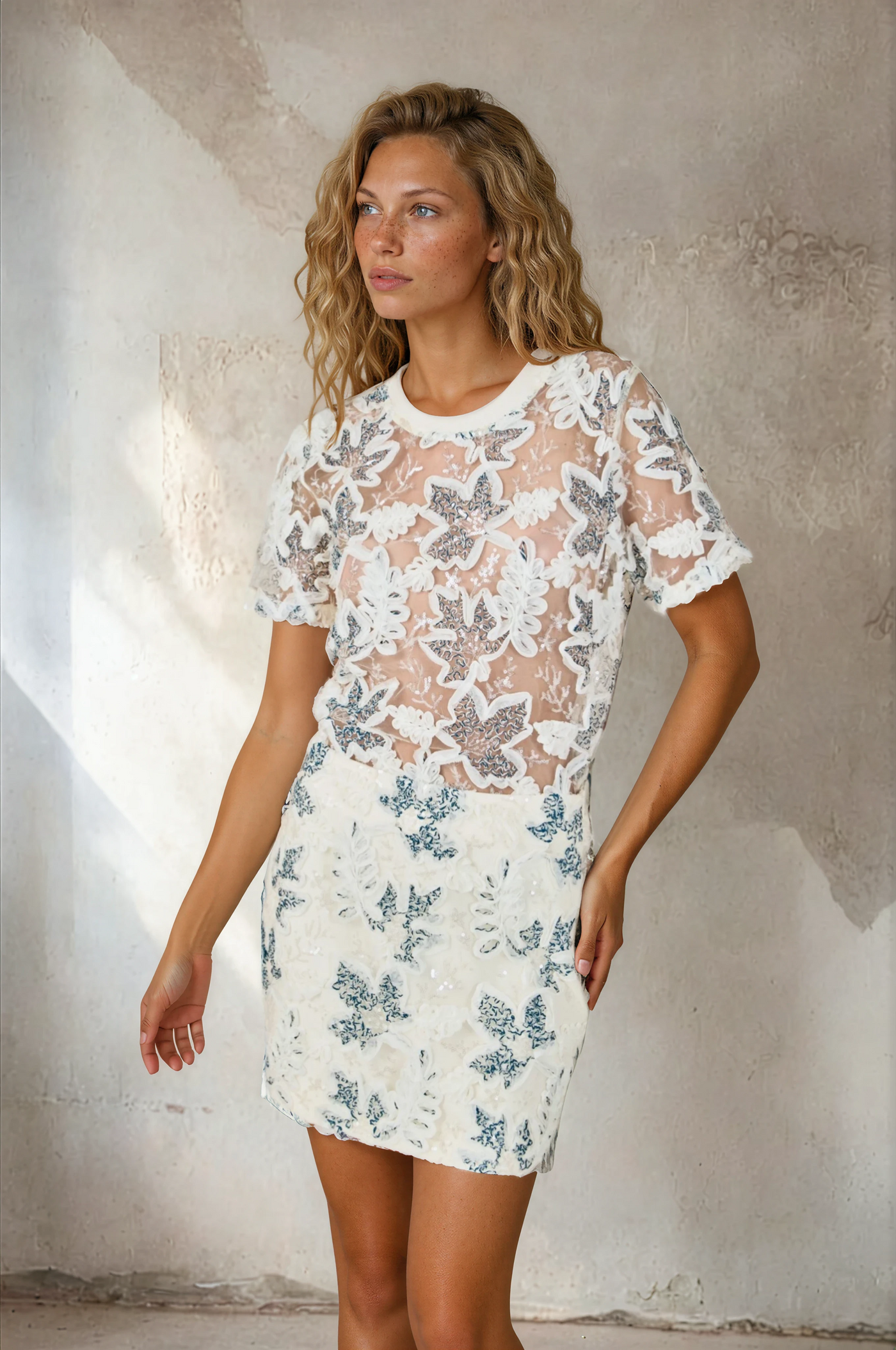 Elevate your everyday style with this eye-catching embroidered sequin tee shirt. Featuring shimmering sequin detailing that catches the light with every move, this piece transforms a classic tee into a statement-making essential. Perfect for adding sparkle to casual outfits, nights out, or when you want to stand out from the crowd. The soft, comfortable fabric ensures all-day wearability without sacrificing style. A versatile wardrobe staple that pairs effortlessly with jeans, skirts, or layered pieces for endless styling possibilities.