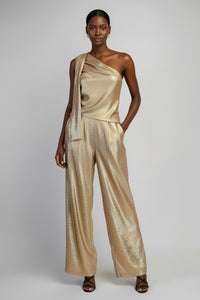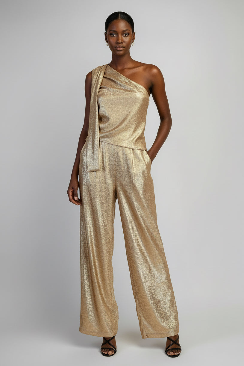 Elevate your wardrobe with these striking metallic trousers, where contemporary edge meets refined elegance. Crafted with a lustrous finish that catches the light beautifully, they transition seamlessly from evening events to upscale casual occasions. The tailored silhouette flatters the figure while the metallic sheen adds an unexpected touch of glamour to any ensemble. Perfect for those who appreciate bold, statement-making pieces that command attention.