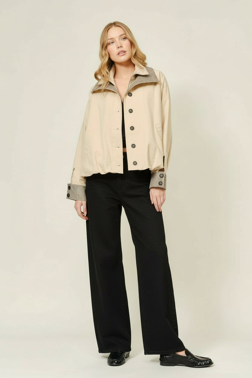 Track Button Down Jacket Elevate your everyday layering with this refined button-down jacket. Crafted for versatility, it transitions seamlessly from casual weekends to polished weekday looks. The structured silhouette and quality construction ensure a flattering fit, while the classic button closure offers effortless styling. Perfect for layering over dresses, tees, or worn solo, this piece becomes an essential foundation in any thoughtfully curated wardrobe.