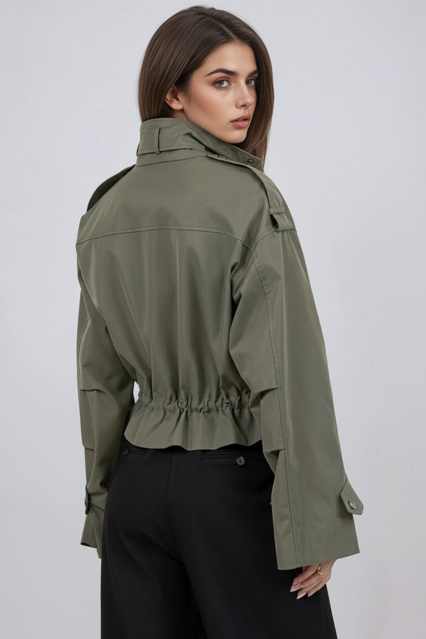 Elevate your outerwear collection with this refined funnel neck trench. The distinctive high collar creates a polished silhouette while providing extra warmth and coverage. Crafted with attention to detail, this timeless piece transitions seamlessly from office to evening, offering versatile styling for the modern woman. A wardrobe essential that combines classic tailoring with contemporary elegance.