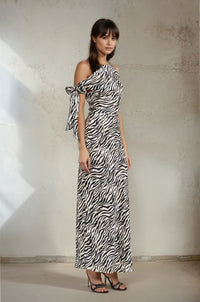 Off Shoulder Satin Maxi Dress - XS / Print