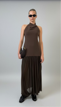The Halter Maxi W/Mesh Contrast - S / Chocolate