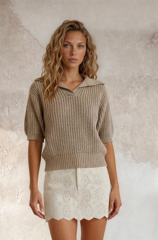 Elevate your everyday wardrobe with this versatile knit top featuring a refined collar detail. Crafted from soft, breathable knit fabric, it offers comfortable all-day wear while maintaining a polished silhouette. The structured collar adds a touch of sophistication, making it perfect for layering or wearing solo. Pair it with your favorite bottoms for effortless style that transitions seamlessly from day to night.