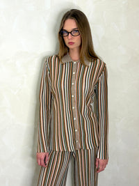Elevate your layering game with this refined button cardigan, featuring shimmering lurex stripes that catch the light with understated elegance. The structured silhouette and classic button front make it effortlessly versatile—perfect for layering over dresses, pairing with tailored trousers, or wearing solo as a statement piece. Soft, breathable fabric ensures all-day comfort while the metallic detailing adds a touch of glamour to any ensemble. A timeless wardrobe essential that transitions seamlessly from office to evening.