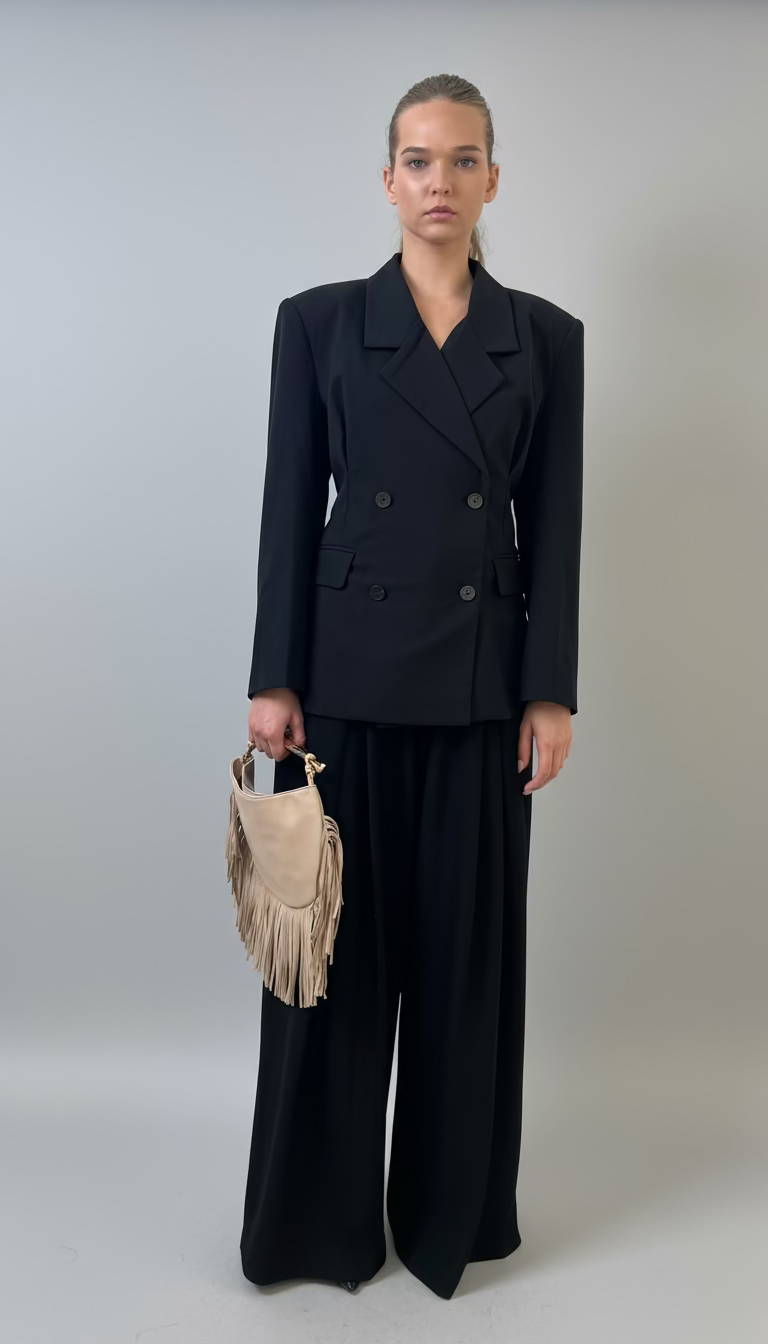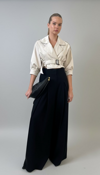 The Super HW Wideleg combines timeless elegance with modern comfort. Crafted with a high-waisted silhouette and wide-leg design, it offers a flattering fit that enhances your profile while ensuring ease of movement. This piece effortlessly transitions from professional settings to refined casual occasions, making it a versatile addition to any wardrobe. Embrace a sophisticated look with the perfect blend of structure and fluidity.