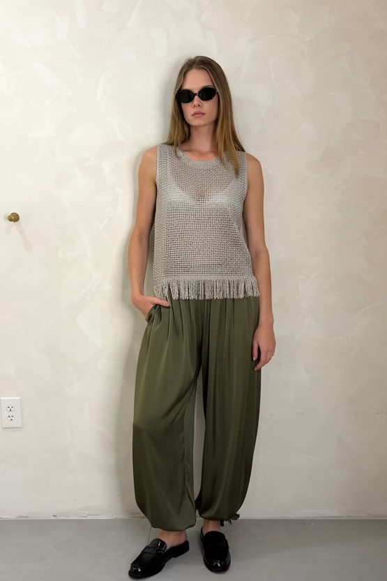 The Tie Hem Bubble Pant combines playful design with refined elegance. Featuring a distinctive gathered hem secured with delicate ties, this silhouette adds movement and dimension to your wardrobe. The bubble construction creates a flattering, voluminous shape through the hip and thigh, tapering gracefully at the ankle. Pair with fitted tops to balance the proportions, or embrace the statement with minimalist accessories for an intentionally curated aesthetic.