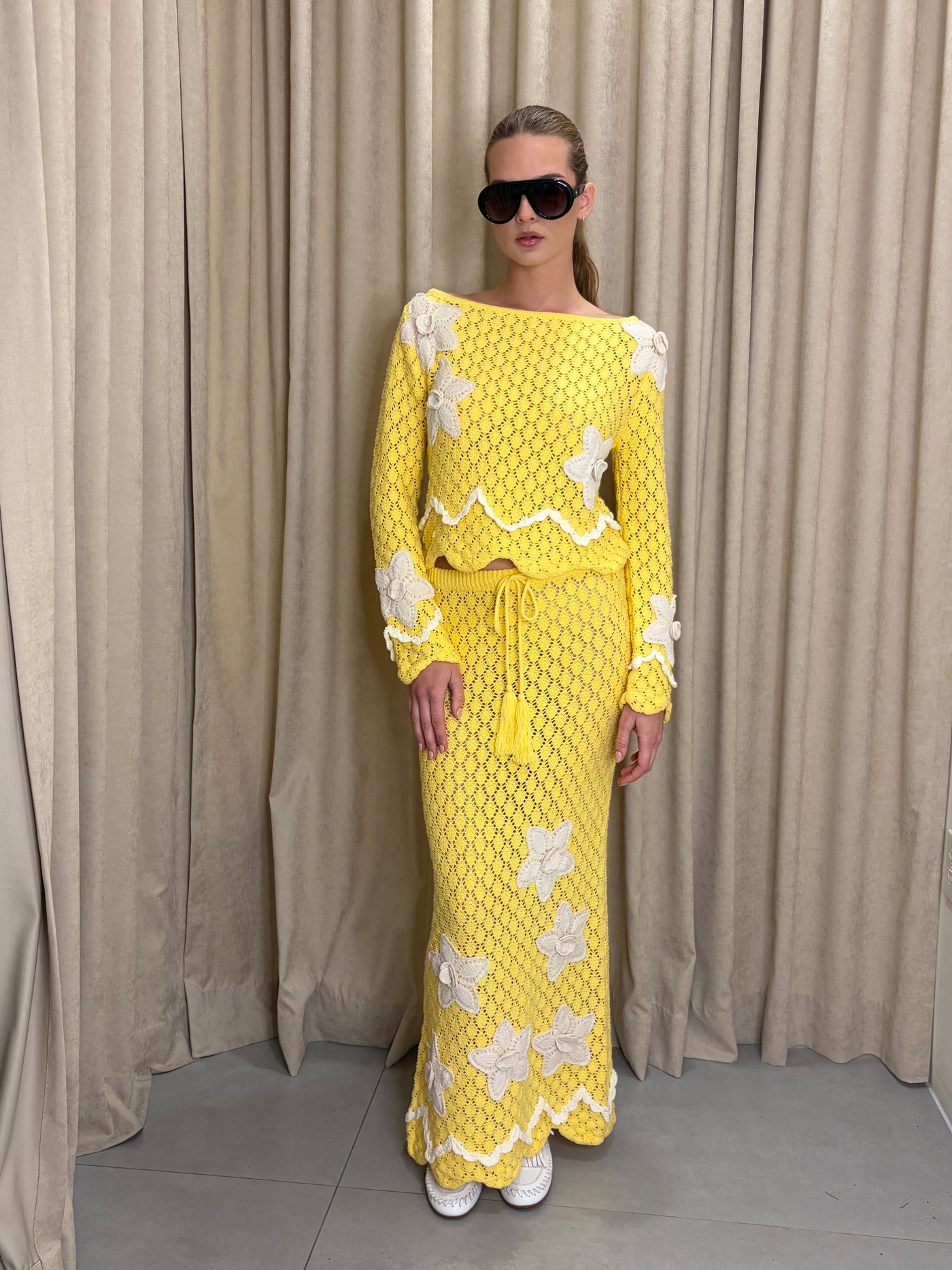 Elevate your wardrobe with this sophisticated crochet maxi skirt set, where intricate handcrafted details meet contemporary elegance. The delicate openwork pattern creates a breathable, layered silhouette perfect for warm-weather occasions, while the coordinated two-piece design offers versatile styling options. Pair the skirt with the included top for a polished ensemble, or mix and match with your existing pieces. Ideal for resort wear, evening events, or effortless everyday sophistication.