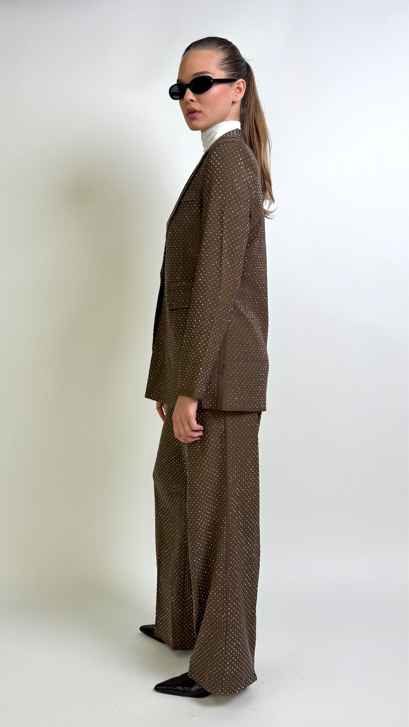 Elevate your formal wardrobe with this striking rhinestone suit jacket. Meticulously crafted with sparkling embellishments that catch the light, this piece transforms any occasion into a statement moment. The tailored silhouette ensures a polished fit, while the rhinestone detailing adds luxury and glamour. Perfect for evening events, celebrations, or when you want to command attention with refined elegance.