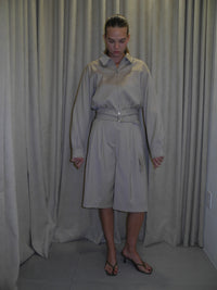 These belted Bermuda shorts offer a polished and tailored look, enhanced by a sleek belt that defines the waist. Crafted for a sophisticated silhouette, they blend comfort with refined style, making them ideal for elevated casual or smart summer ensembles.