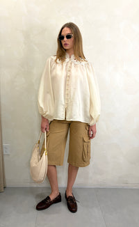 The Cargo Bermuda reimagines utilitarian style with contemporary refinement and thoughtful proportions. These knee-length shorts feature functional cargo pockets and structured tailoring that elevates the practical silhouette into fashion-forward territory. The quality fabrication ensures durability while maintaining a polished appearance, making them equally at home in casual weekend settings or relaxed professional environments. Layer them with oversized blazers, fitted tanks, or lightweight sweaters to create versatile looks that balance ease with elegance. A modern essential for those who refuse to compromise between comfort and style.