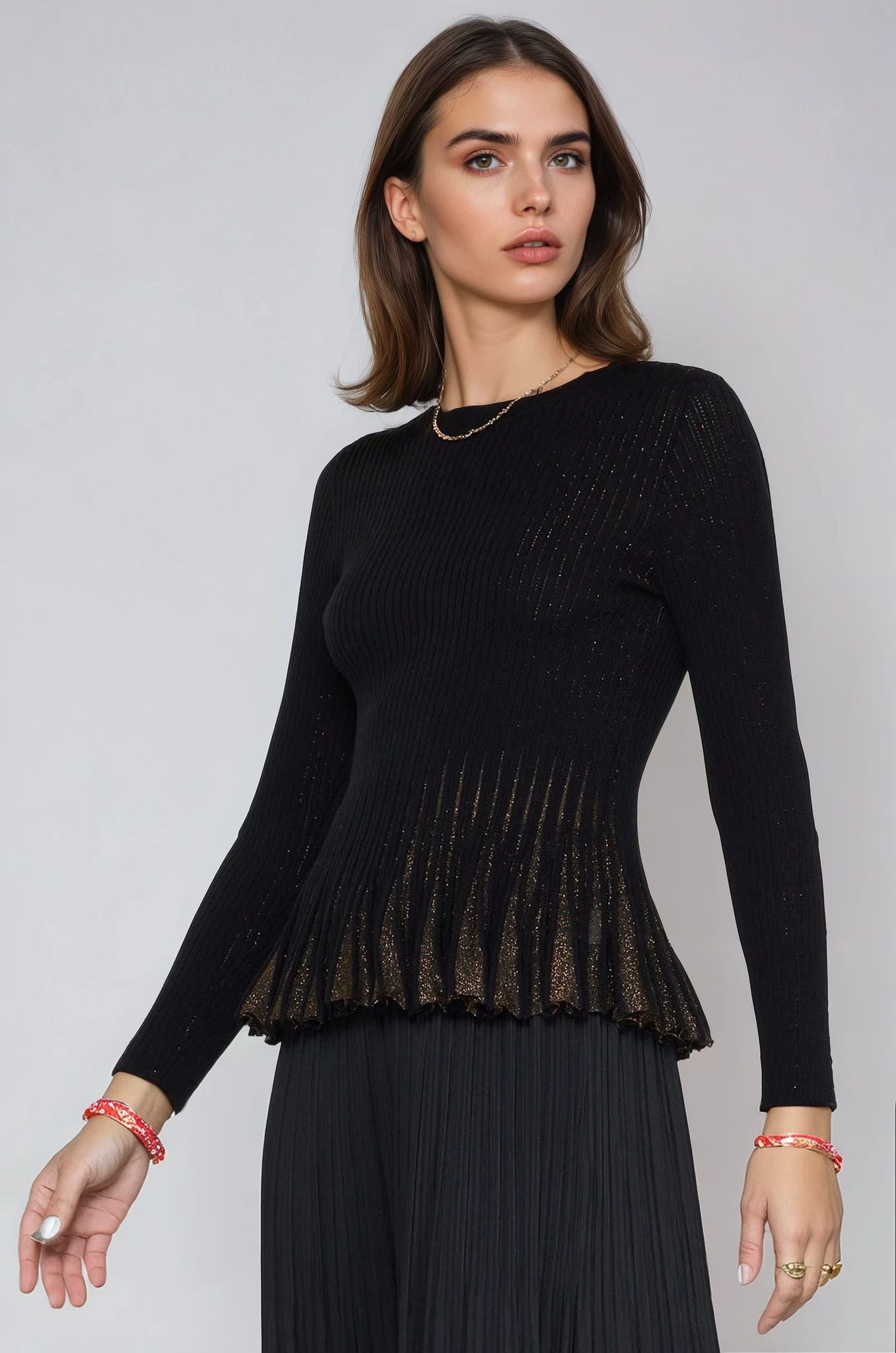 Knit L/s Peplum Top - XS / Black