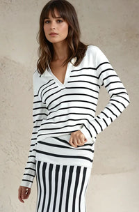 Crafted from a soft knit fabric, the Stripe Knit Sweater offers a polished look with its classic striped design. Its refined fit balances comfort and style, making it ideal for layering or standalone wear. Perfect for elevating casual ensembles or adding subtle texture to more formal outfits, this sweater is a versatile staple for a sophisticated wardrobe.
