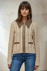 The Full Zip Sweater - S / Taupe